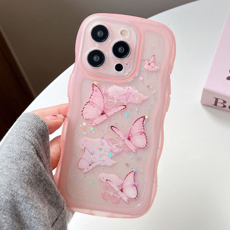 Funda híbrida TPU y PC borde ondulado mariposa para iPhone 16 Pro Max (Rosa)