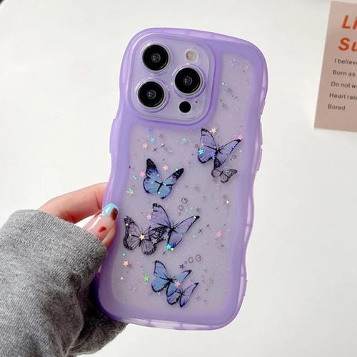 Funda híbrida TPU y PC iPhone 16 Pro borde ondulado mariposa (Morada)