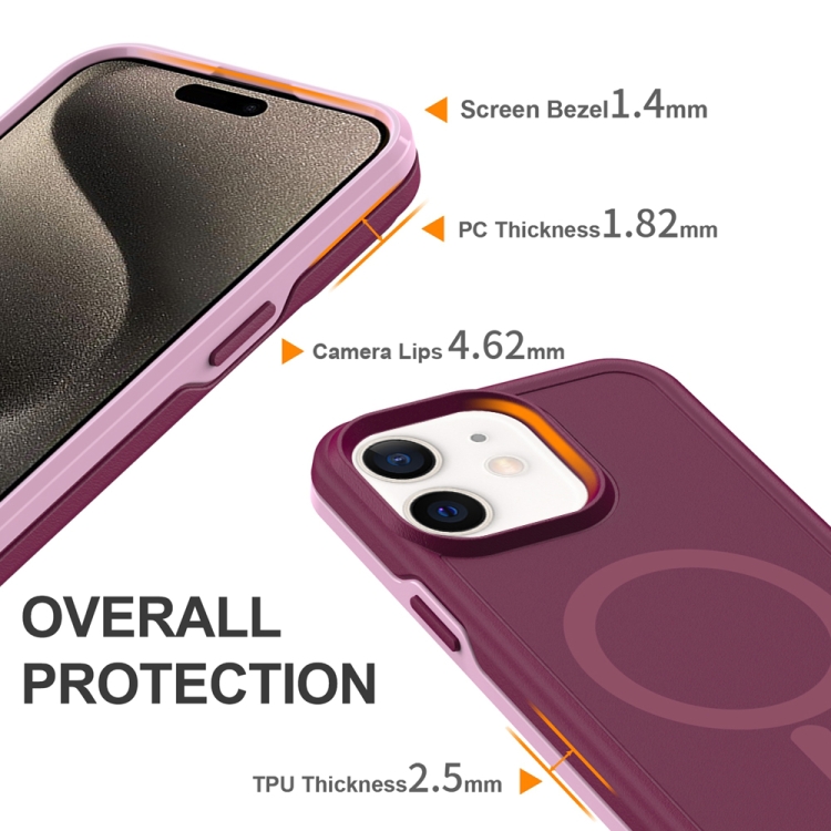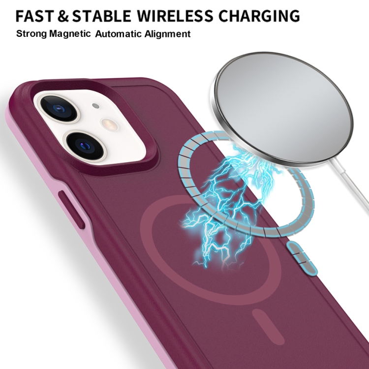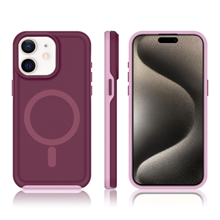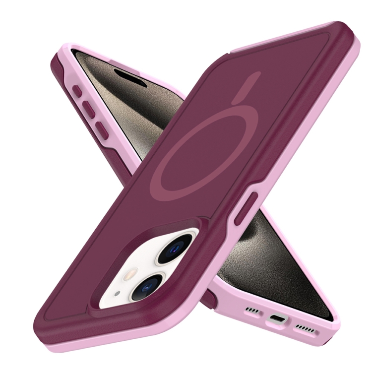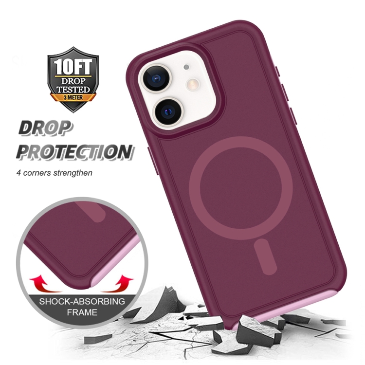 Funda híbrida TPU y PC para iPhone 12 con Protección Magsafe a prueba de golpes (Rojo Vino y Rosa Claro)