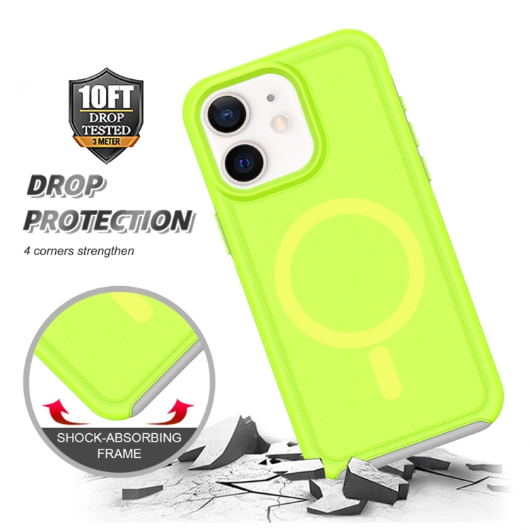 Funda híbrida TPU y PC para iPhone 12 con protección Magsafe a prueba de golpes (Verde Fluorescente y Gris)