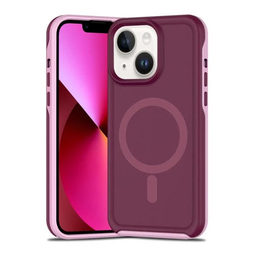 Funda Híbrida TPU y PC para iPhone 13 Protección Magsafe a Prueba de Golpes (Rojo Vino y Rosa Claro)