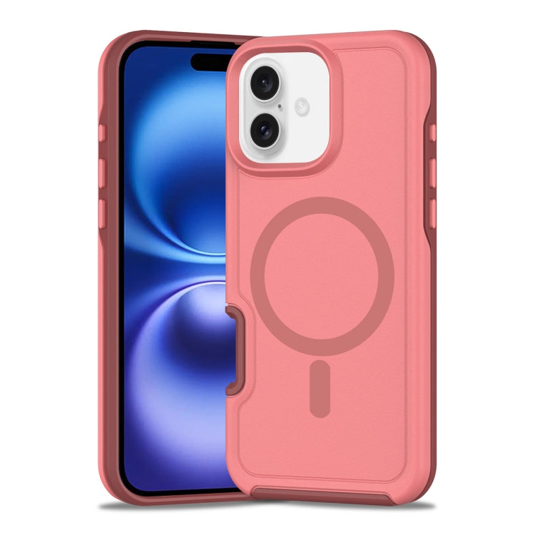 Funda híbrida TPU y PC para iPhone 16 con protección Magsafe a prueba de golpes (Rosa Oscuro y Granate)