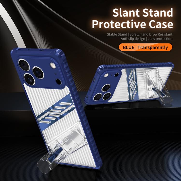 Funda híbrida de TPU y PC con soporte chapado para iPhone 17 Pro Max (azul marino)