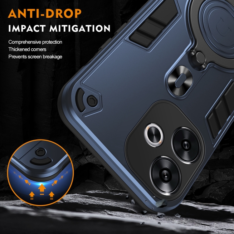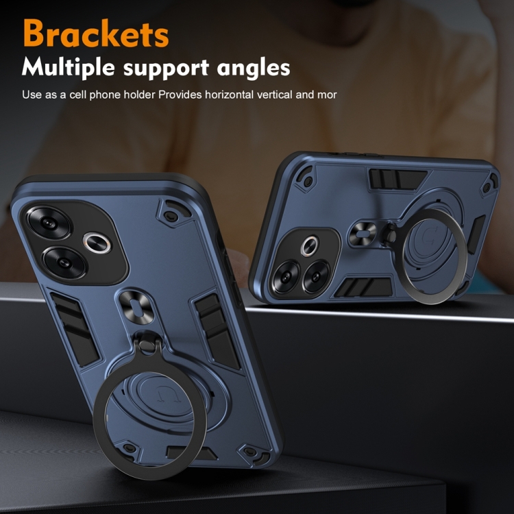 Funda Híbrida de TPU y PC con Soporte Giratorio de 360 Grados y Anillo de Metal para Redmi Turbo 3 (Azul Marino)