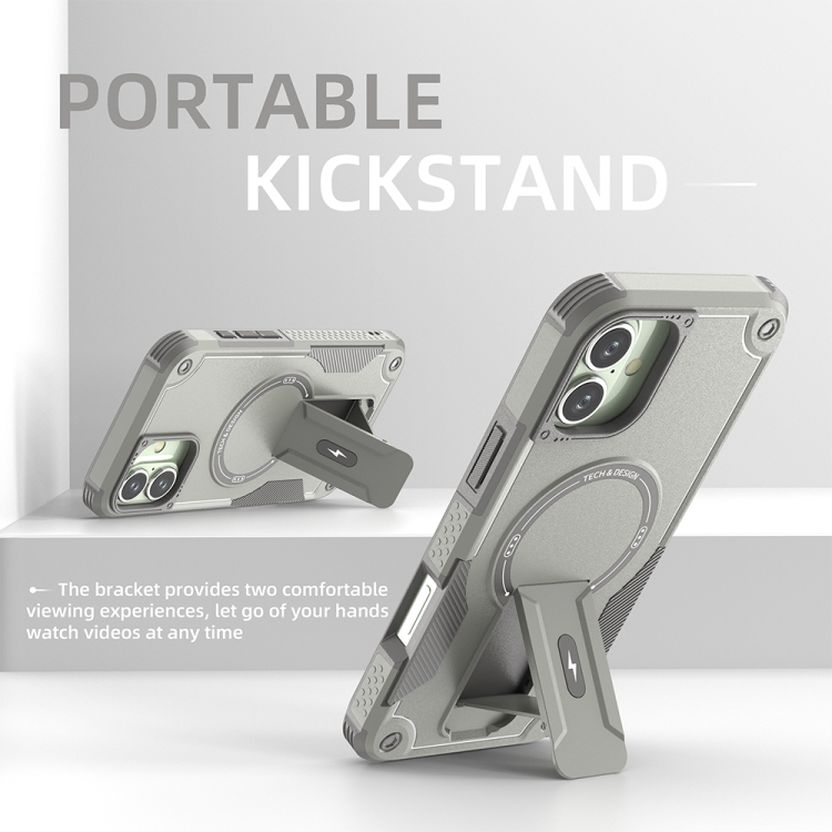 Funda híbrida TPU y PC con soporte Magsafe para iPhone 16 Plus (Gris)
