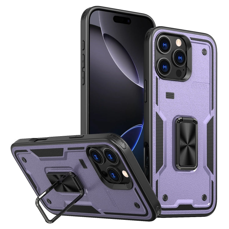Funda híbrida TPU y PC con soporte para anillo iPhone 16 Pro Max (Morado)