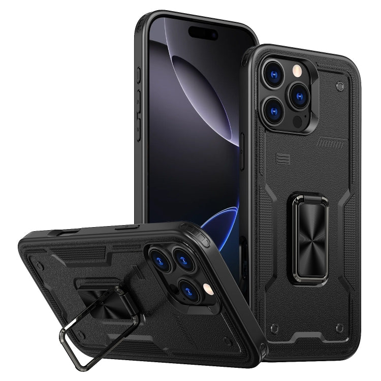 Funda Híbrida TPU y PC para iPhone 16 Pro Max con Soporte Anillo (Negra)