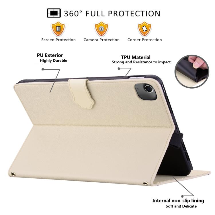 Funda inteligente de piel de lichi con tacto de gato para iPad Air 11 (2025/2024) (blanco albaricoque)