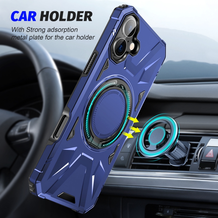 Funda Magnética a Prueba de Golpes Magsafe para iPhone 16 Plus con Soporte para Anillo (Azul Marino)