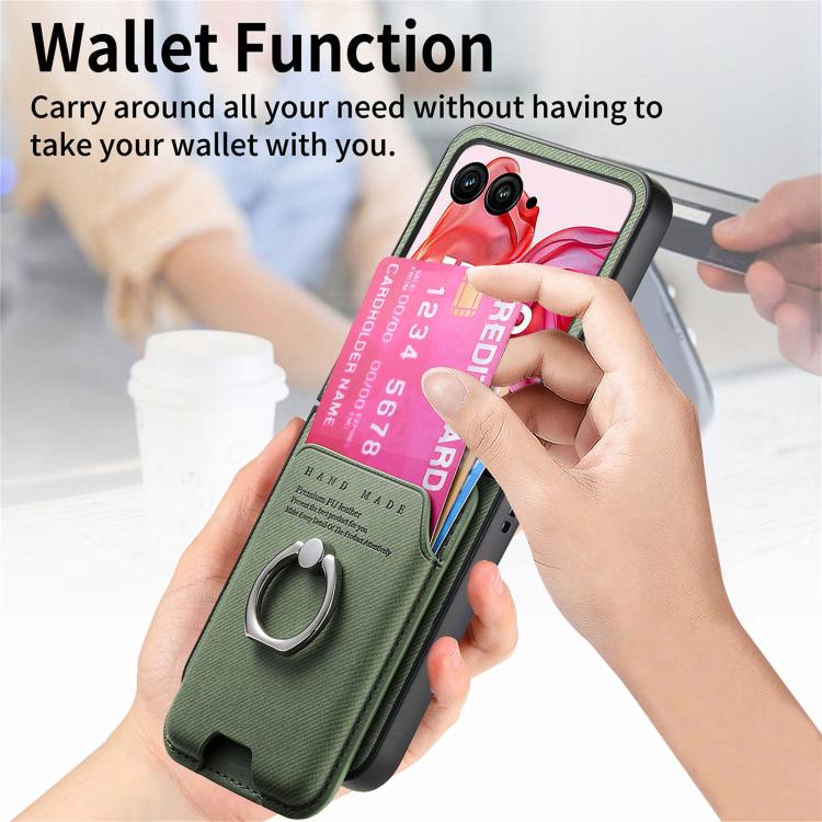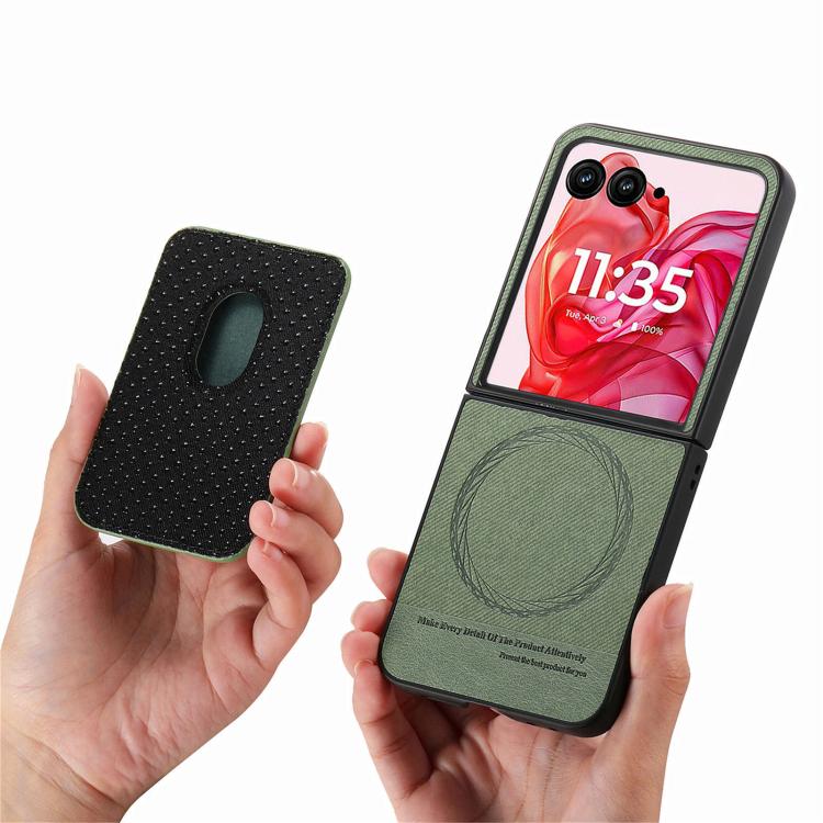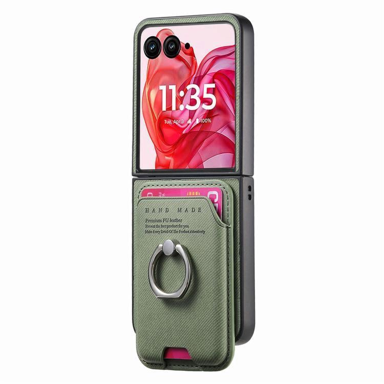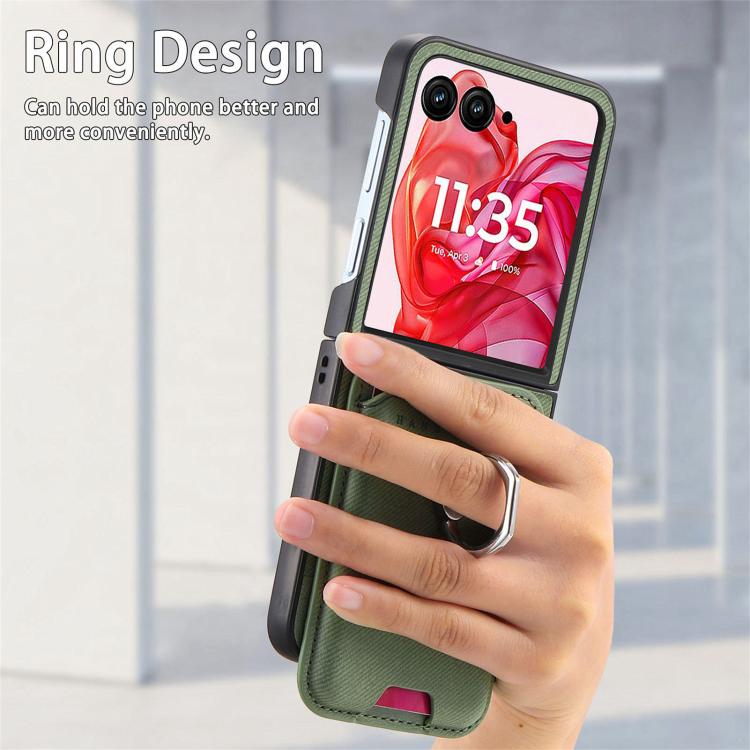 Funda magnética con anillo para Motorola Moto Razr 50 Ultra, de tela sarga, con ranuras para tarjetas (verde)