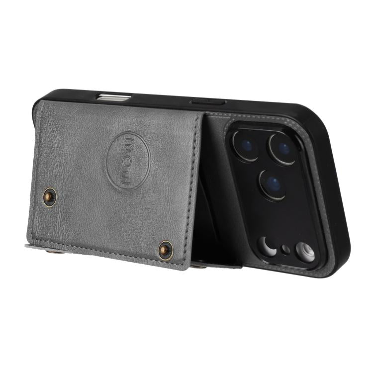 Funda magnética con doble hebilla y ranuras para tarjetas para iPhone 17 Pro (gris)