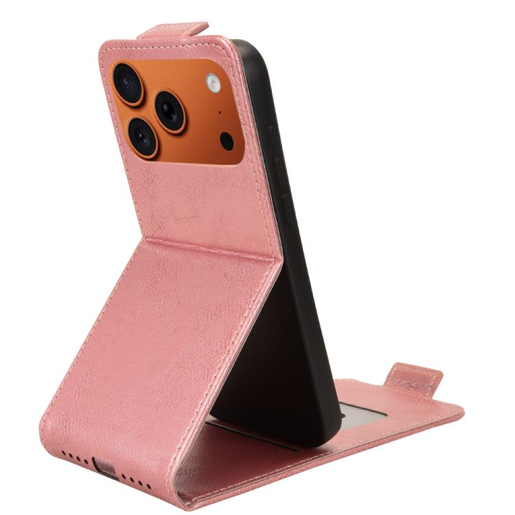 Funda magnética de cuero con tapa vertical y hebilla para iPhone 17 Pro Max (oro rosa)