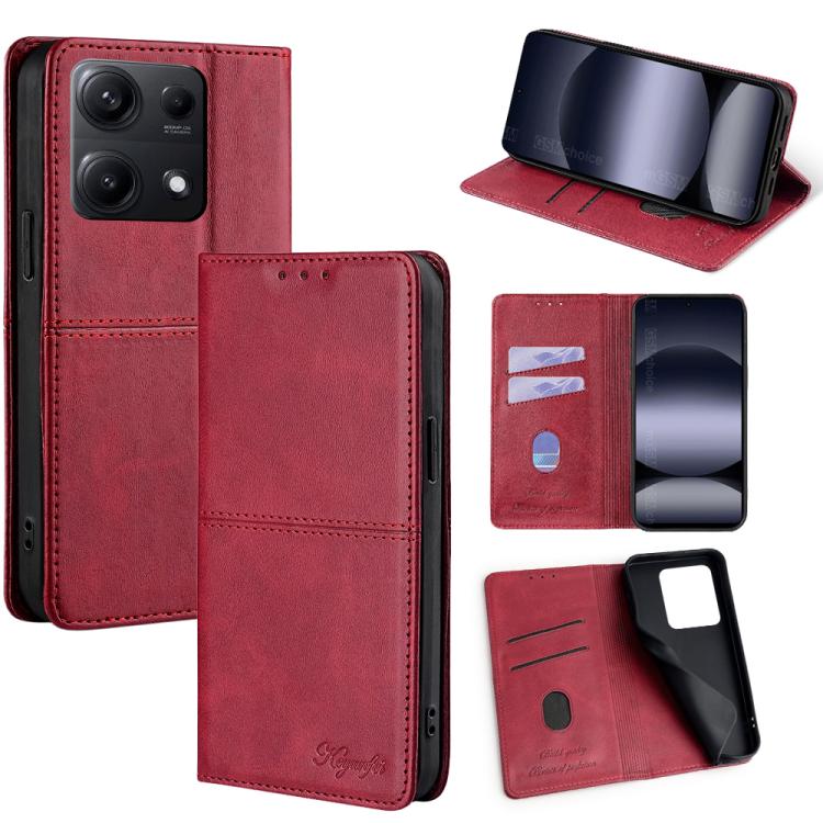 Funda magnética de cuero con textura de vaca para Redmi Note 14S 4G (roja)