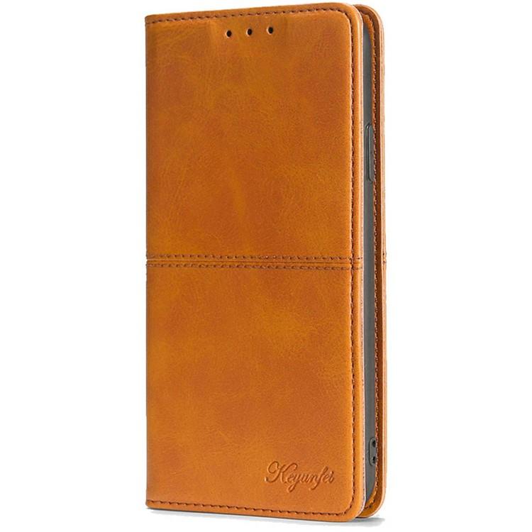 Funda magnética de piel con textura de vaca para iPhone 17 (marrón claro)