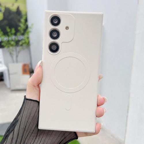 Funda magnética MagSafe de silicona líquida de color sólido para Samsung Galaxy A55 5G (blanco antiguo)