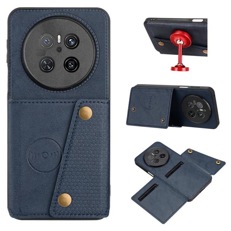 Funda Magnética para Huawei Mate 70 con Ranuras para Tarjetas y Doble Hebilla (Azul)