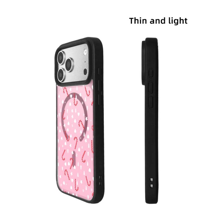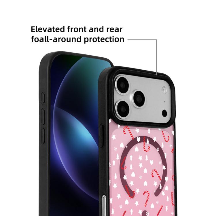 Funda magnética resistente con borde negro pintado de la serie navideña para iPhone 17 Pro Max (rosa dulce semitransparente).
