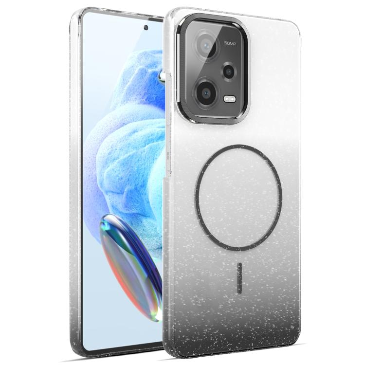 Funda MagSafe a prueba de golpes para Xiaomi Redmi Note 12 Pro 4G con purpurina dorada y degradado (negro)