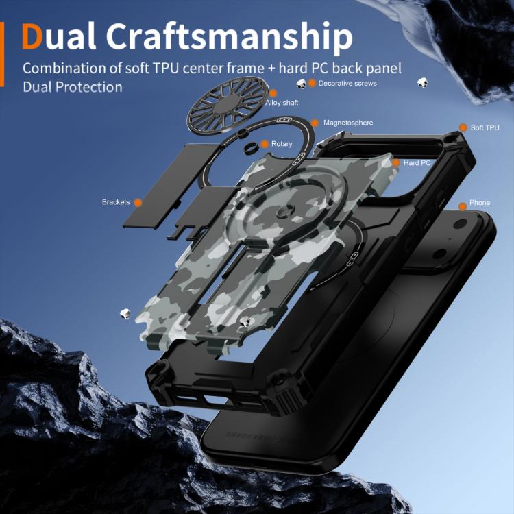 Funda MagSafe con soporte giratorio y diseño de camuflaje para iPhone 17 (camuflaje gris)