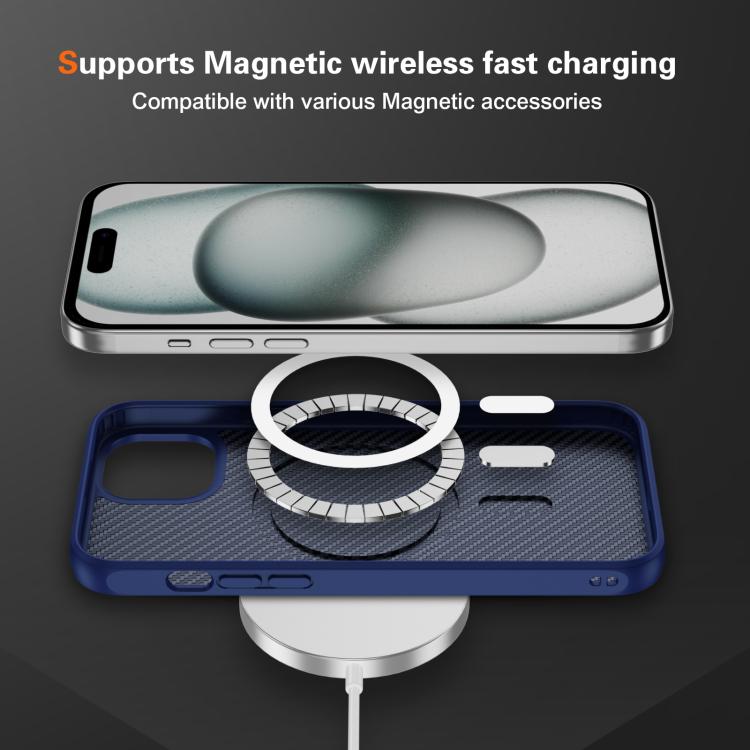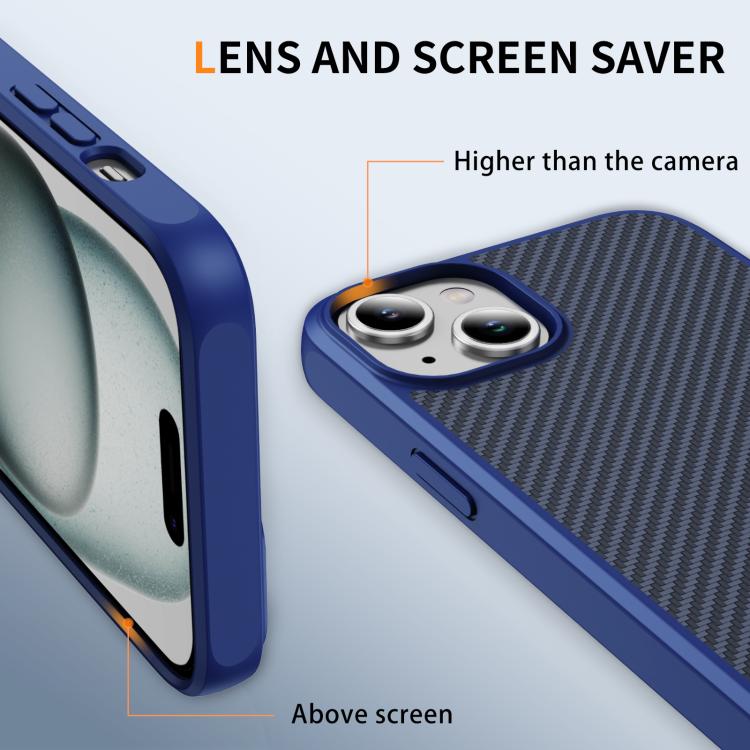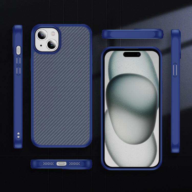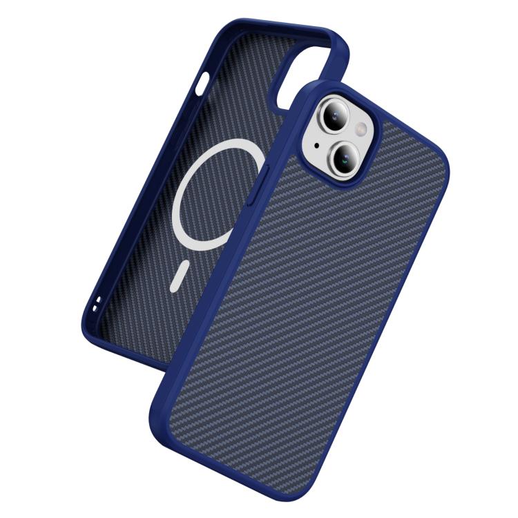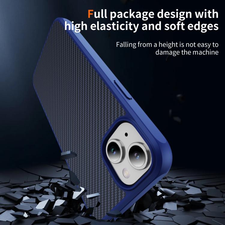 Funda MagSafe con textura de fibra de carbono y tacto suave para iPhone 15 Plus (azul)