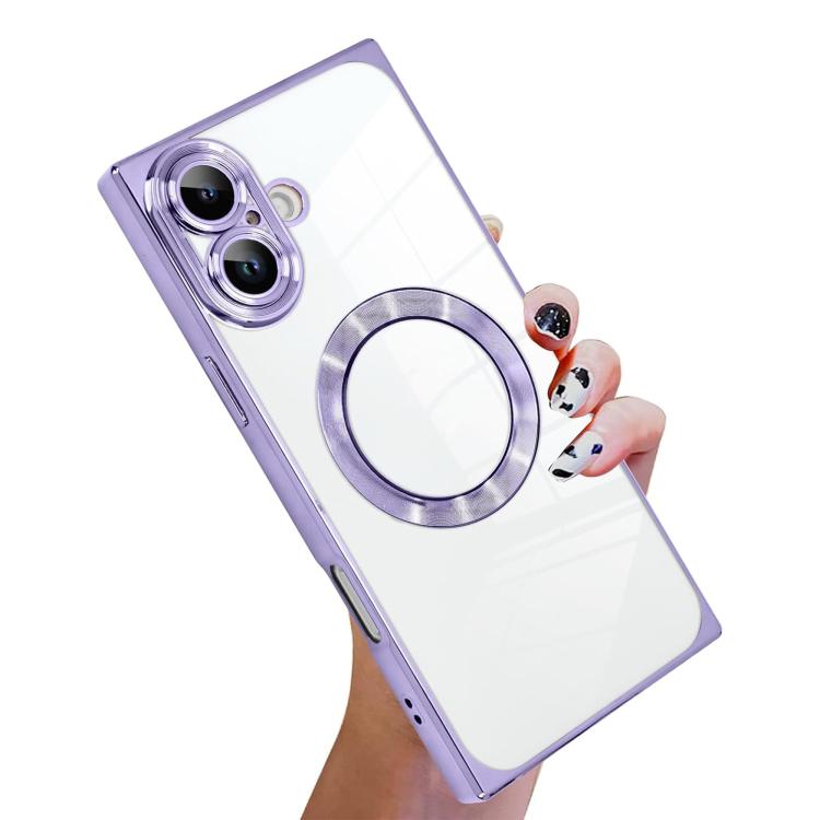 Funda MagSafe de TPU con patrón de CD electrochapado cuadrado y ángulo recto para iPhone 17 (morado claro)