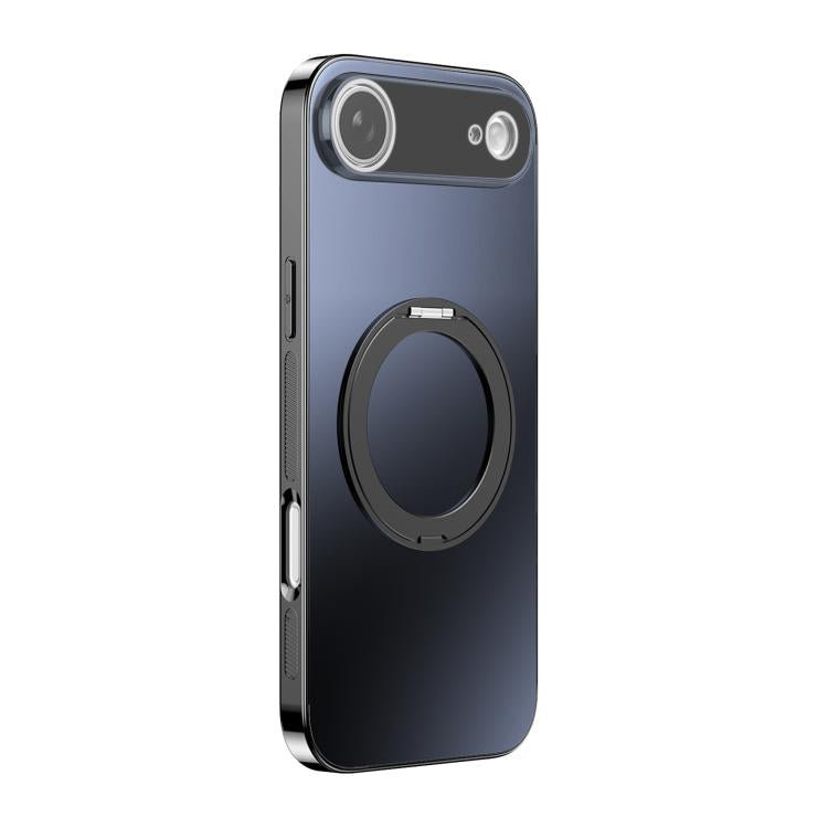 Funda MagSafe electrochapada para iPhone Air con soporte giratorio de 360 grados y cubierta para lente (negra).