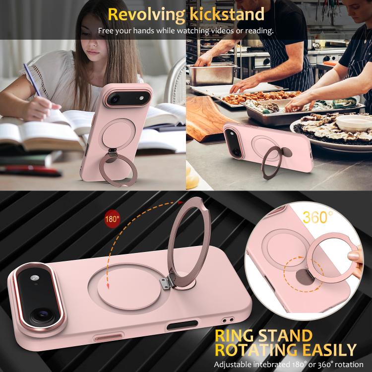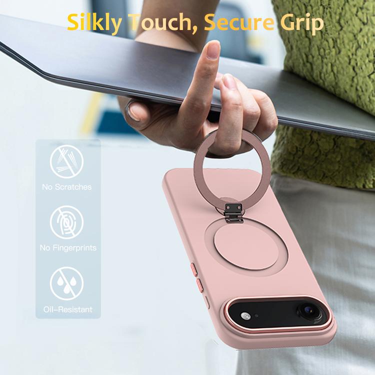 Funda MagSafe híbrida de TPU y PC para iPhone Air Gen1.5 con soporte de anillo pivotante (rosa)