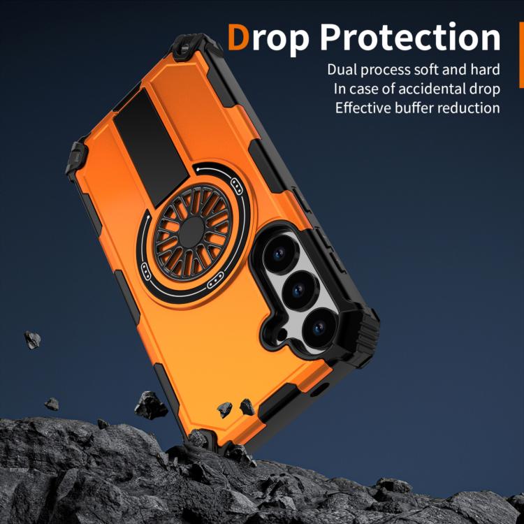 Funda MagSafe para Samsung Galaxy S24+ 5G con soporte metálico y protección contra golpes (naranja)