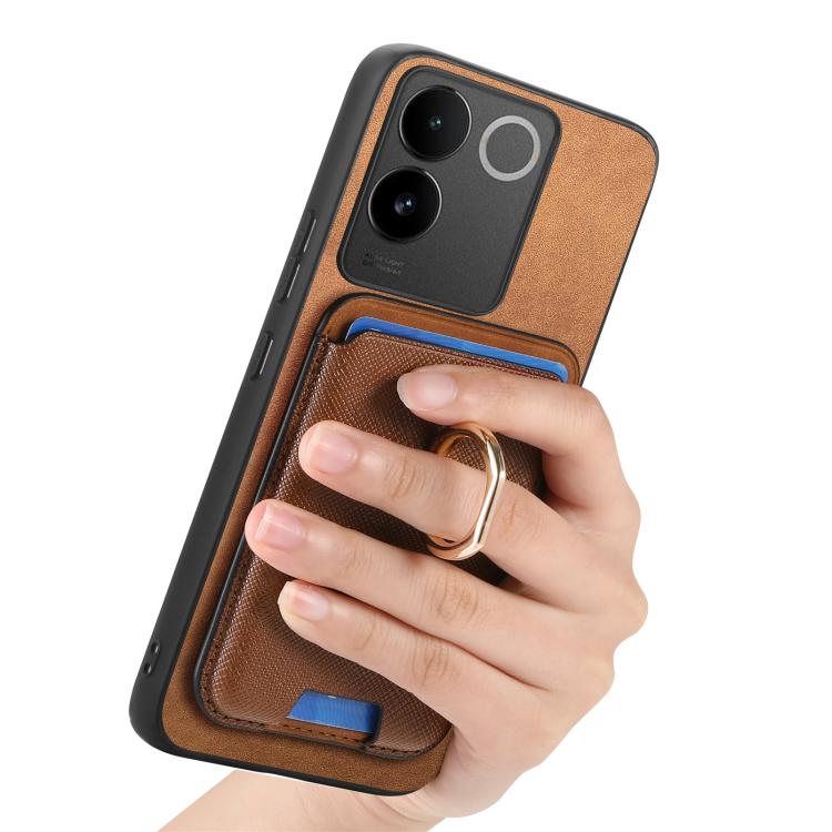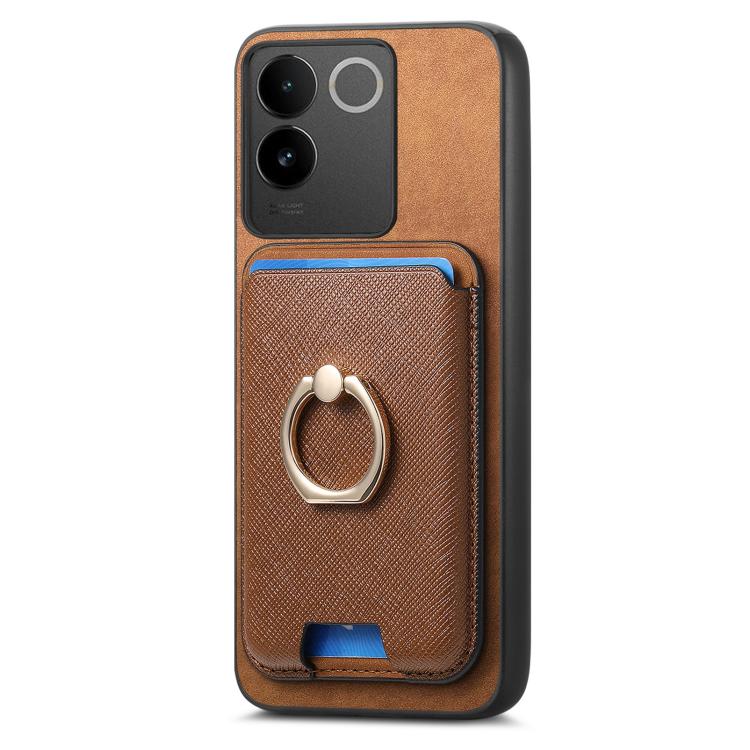 Funda Magsafe para Vivo S20 Retro Cross Leather Ring Vertical Insert Card Bag (Marrón)