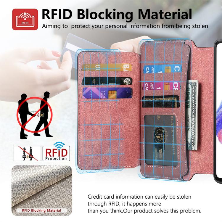 Funda Neo MagSafe RFID antirrobo con cremallera para Samsung Galaxy S25 Edge 5G, estilo retro, de cuero (rosa)