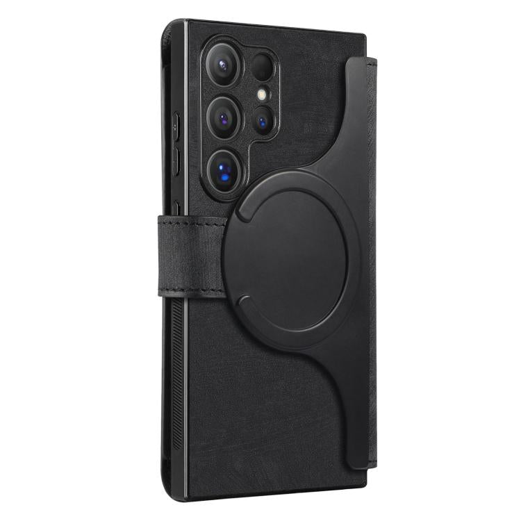 Funda Neo MagSafe RFID antirrobo con cremallera para Samsung Galaxy S25 Ultra 5G, de cuero estilo retro (negra)