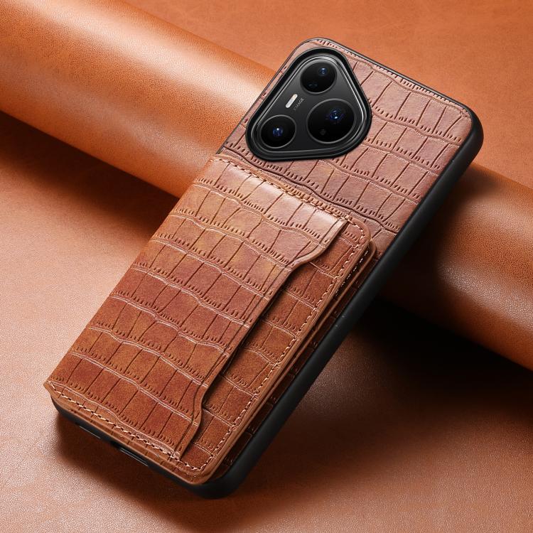 Funda para Huawei Pura 80 Pro / 80 Pro+ 5G con textura de cocodrilo y diseño de cartera, cobertura total (marrón)