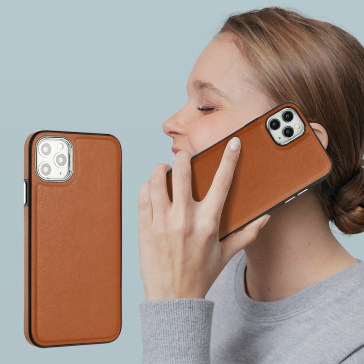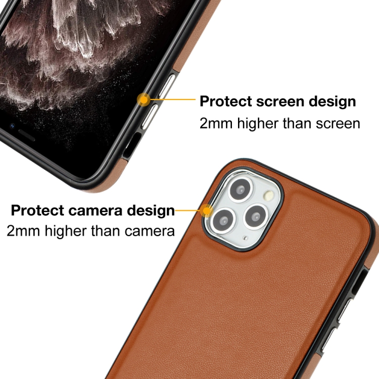 Funda para iPhone 11 Pro Max Textura de Cuero Cobertura Total (Marrón)