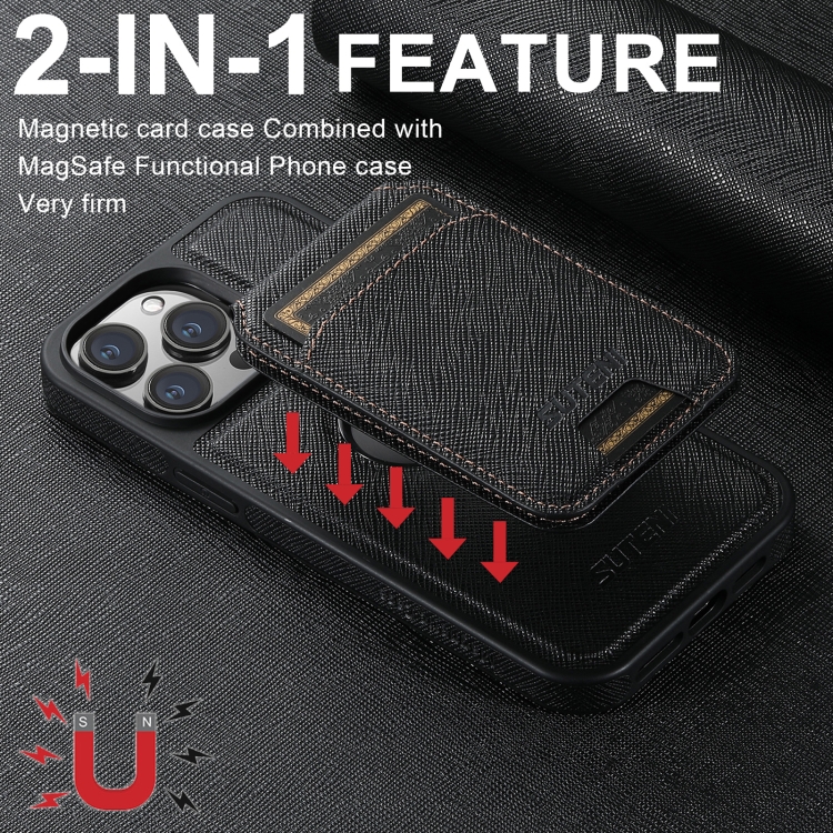 Funda para iPhone 14 Pro Max Suteni M2 Parte Trasera de Tarjeta Vertical Magsafe (Negra)