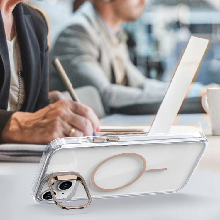 Funda para iPhone 15 Plus con marco de lente MagSafe transparente y brillante (azul)