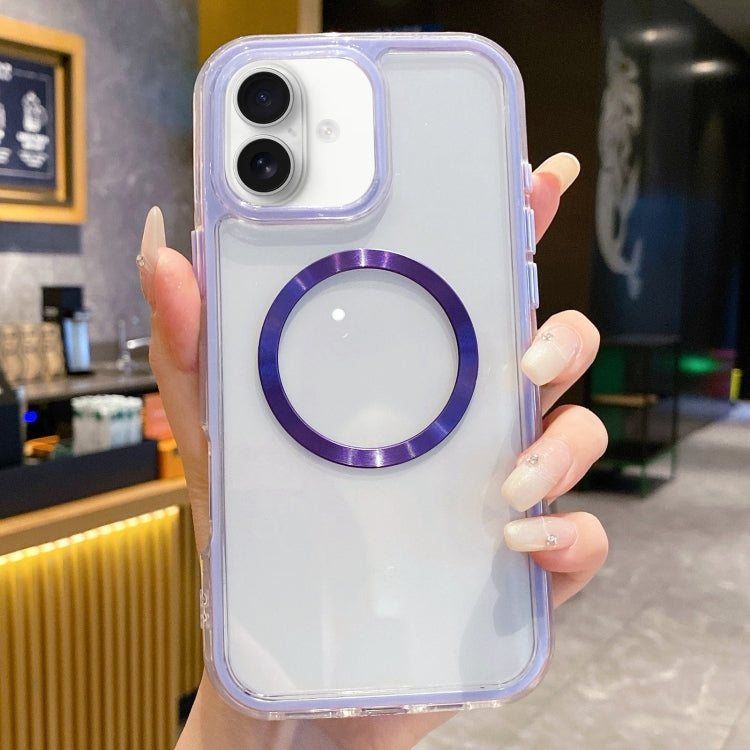 Funda para iPhone 16 3 en 1 con Textura de Cd y Airbag Magsafe (Morado Taro)