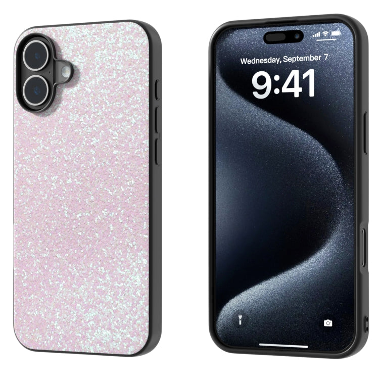 Funda para iPhone 16 con Marco Negro y Purpurina de Colores (Rosa Brillante)