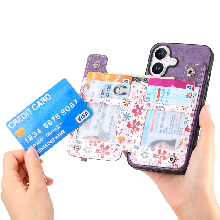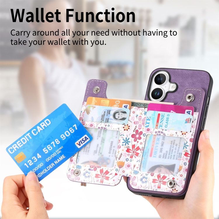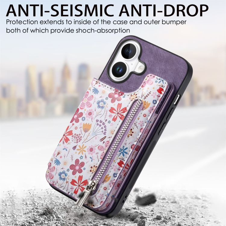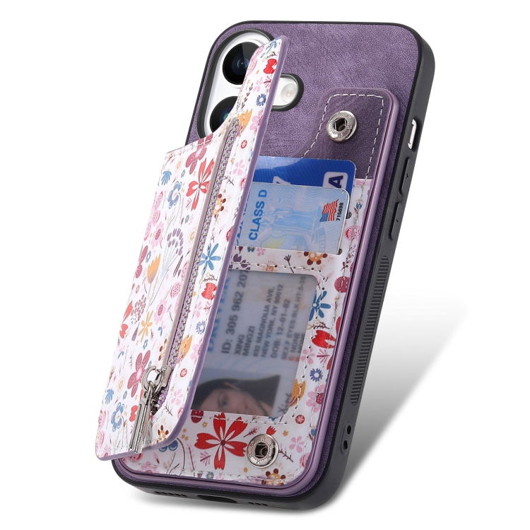 Funda para iPhone 16 Plus con Cremallera Trasera Pintada Retro (Morado)