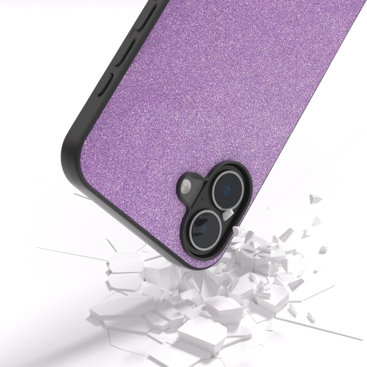 Funda para iPhone 16 Plus Marco Negro Purpurina Prueba de Golpes (Morado)