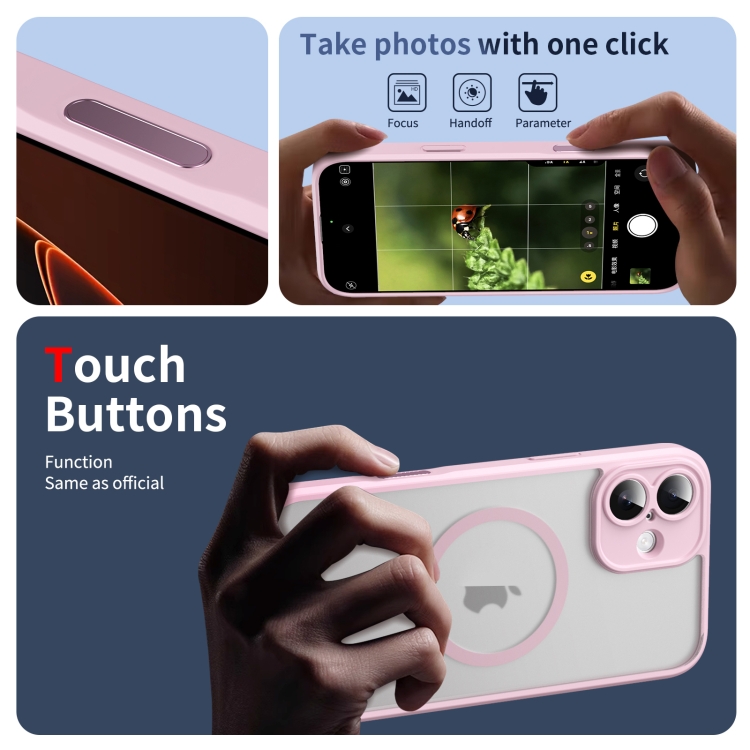 Funda para iPhone 16 Plus con Tapa Translúcida y Botón de Inteligencia Artificial (Rosa)