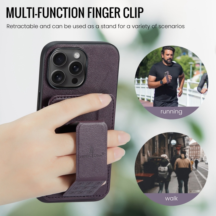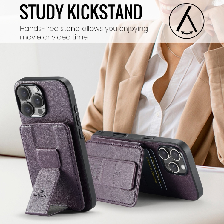 Funda para iPhone 16 Pro Fierre Shann con Tarjetero de Piel de Vaca con Cera de Aceite (Morado)