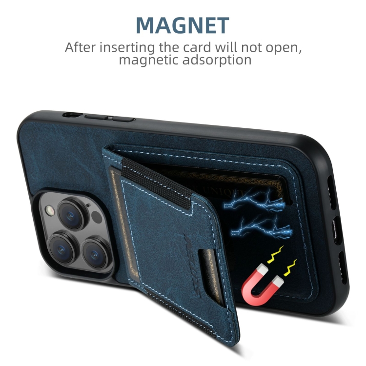 Funda para iPhone 16 Pro Suteni H03 Piel de Lichi con Tarjetero y Soporte (Azul)