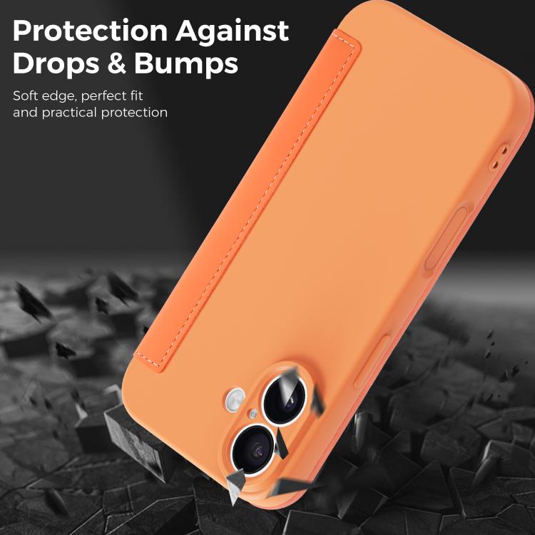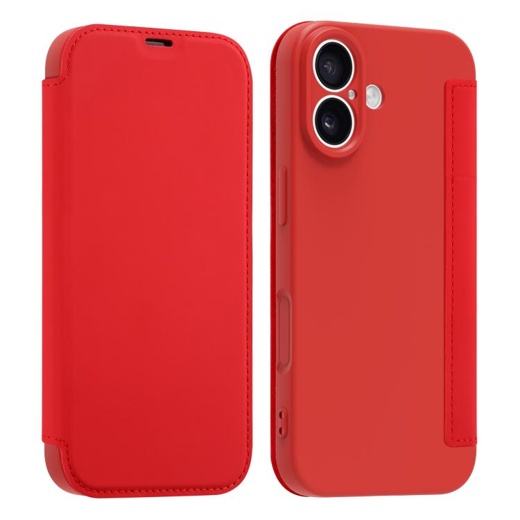 Funda para iPhone 17 con tacto de piel sintética tipo Liquid Skin y ranuras para tarjetas (Roja)
