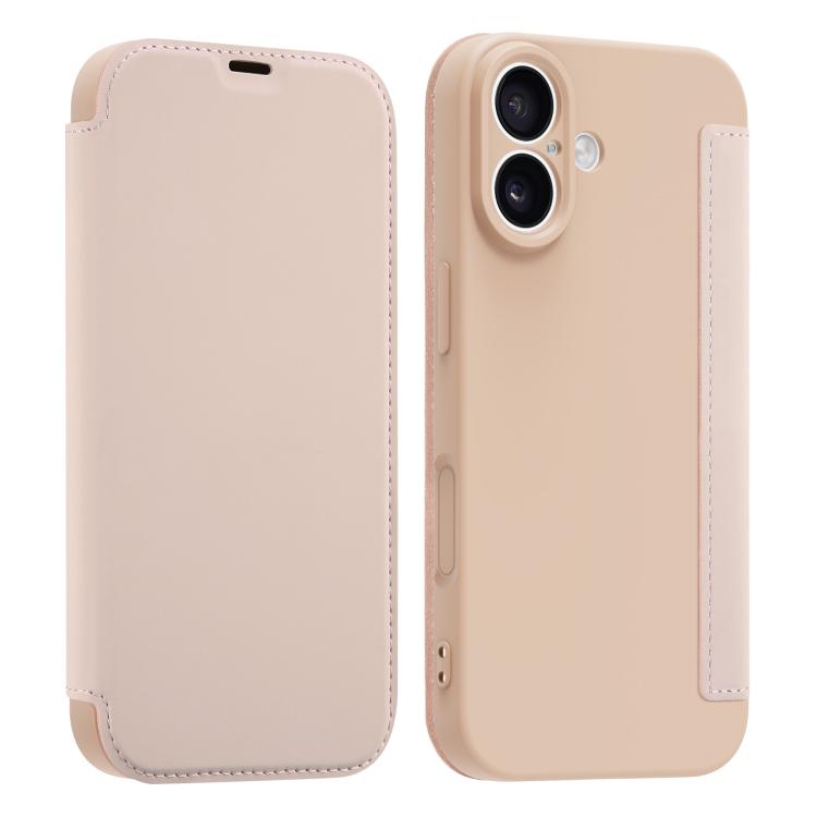 Funda para iPhone 17 con tacto de piel sintética tipo Liquid Skin y ranuras para tarjetas (rosa)
