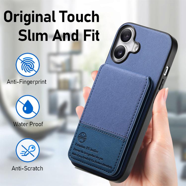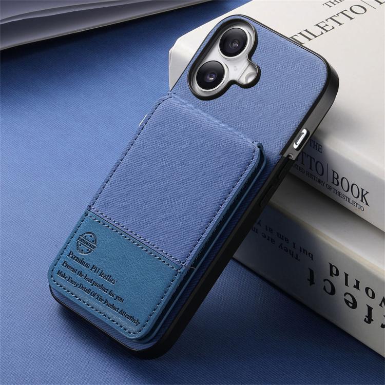 Funda para iPhone 17 de piel y sarga con tapa vertical RFID para tarjetas (azul)