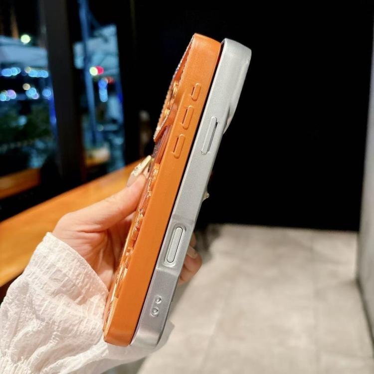 Funda para iPhone 17 Pro Max de TPU electrochapado con loto, calada, con diamantes de imitación y purpurina (naranja)