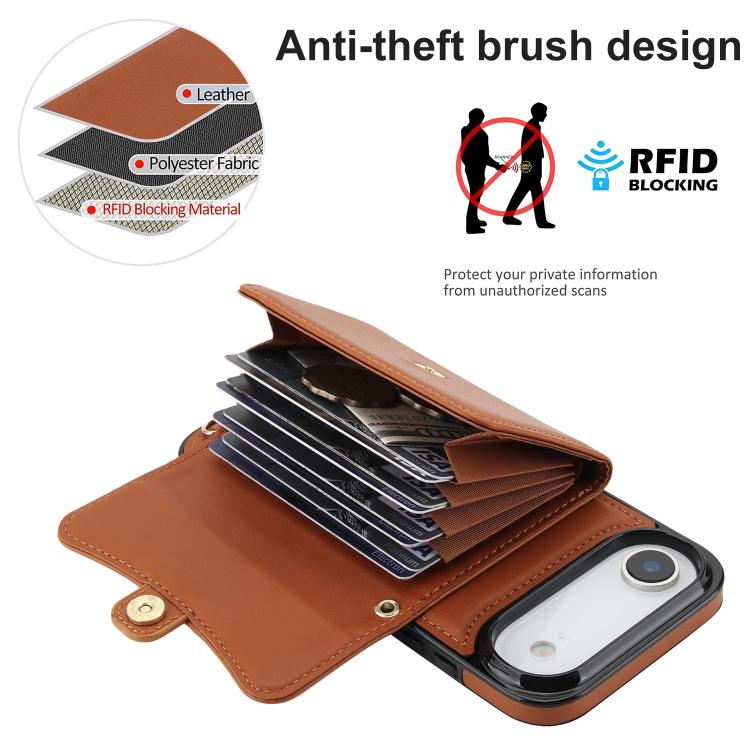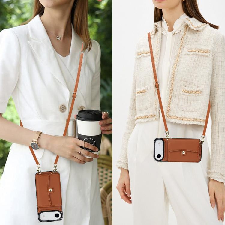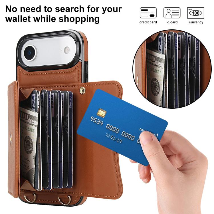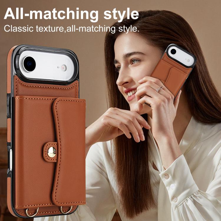 Funda para iPhone Air con ranura para tarjeta RFID y cordón largo (marrón)