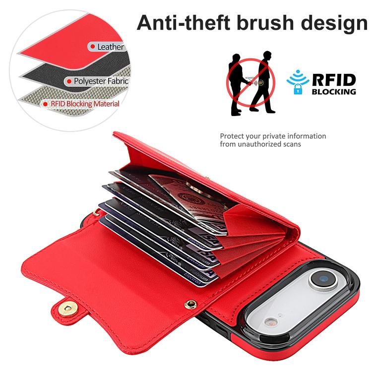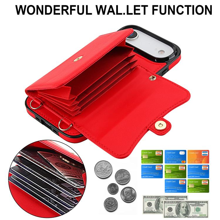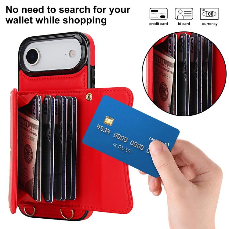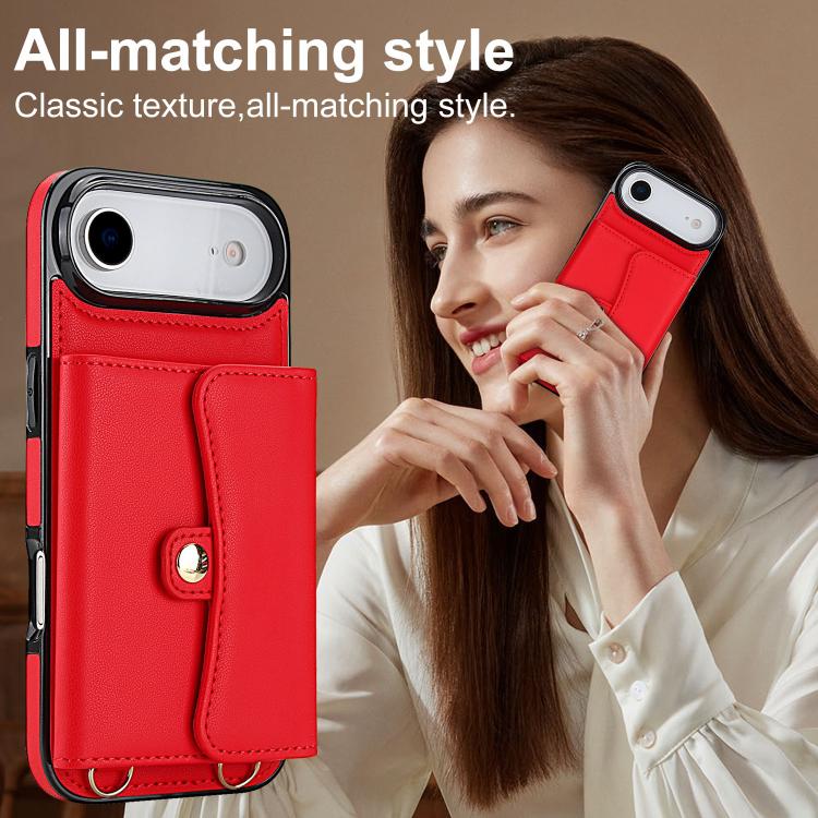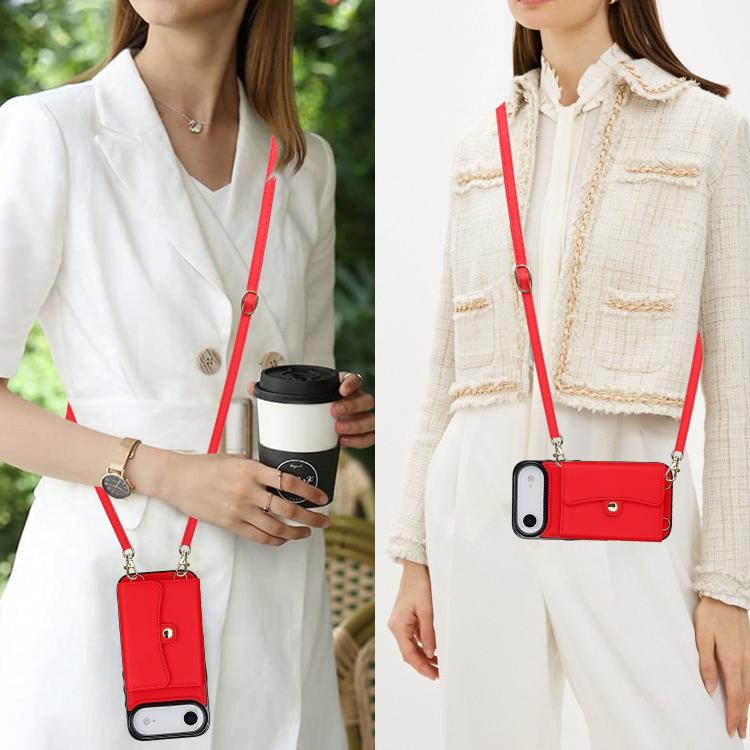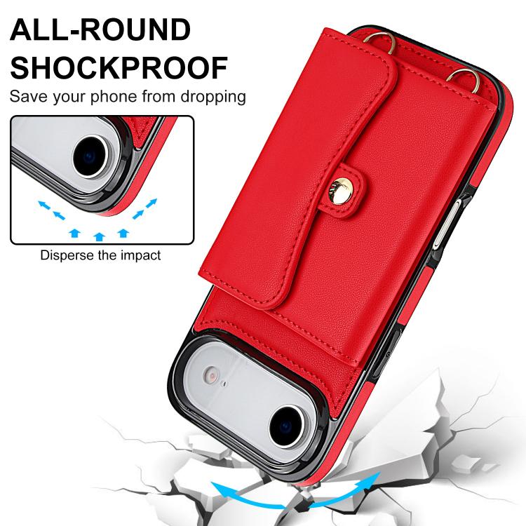 Funda para iPhone Air con ranura para tarjeta RFID y cordón largo (roja)