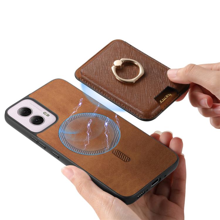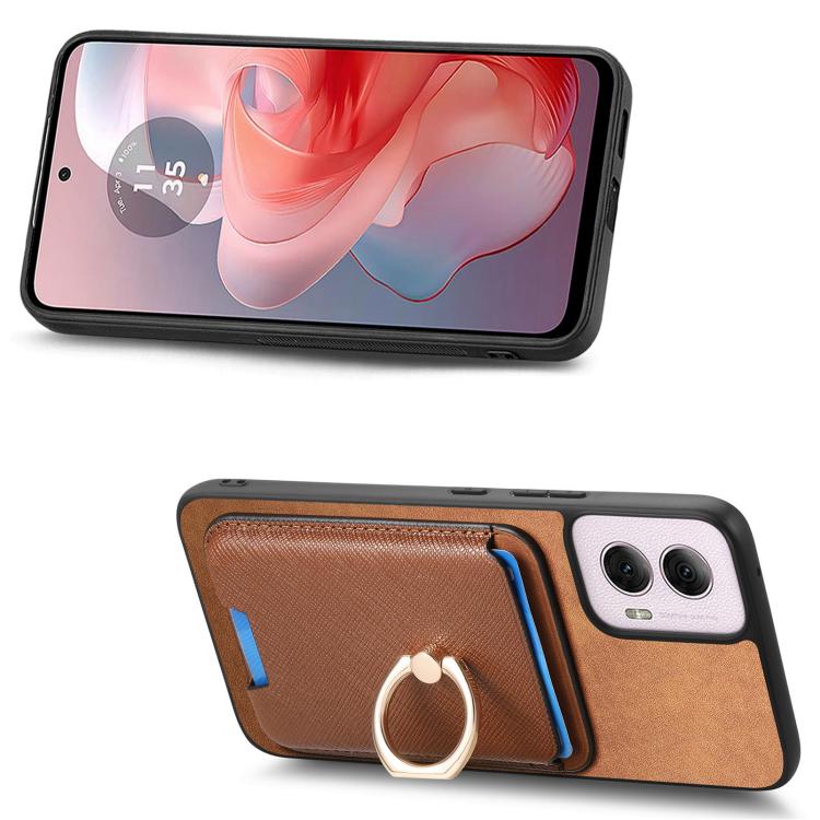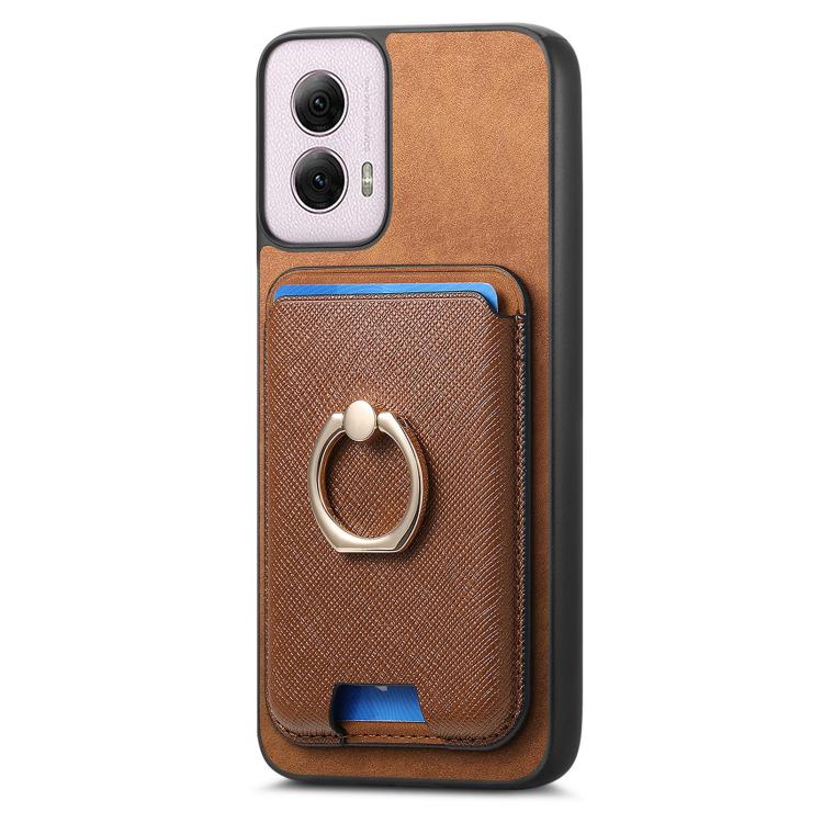 Funda para Motorola Moto G35 con Ranuras para Tarjetas y Anillo de Cuero (Marrón)