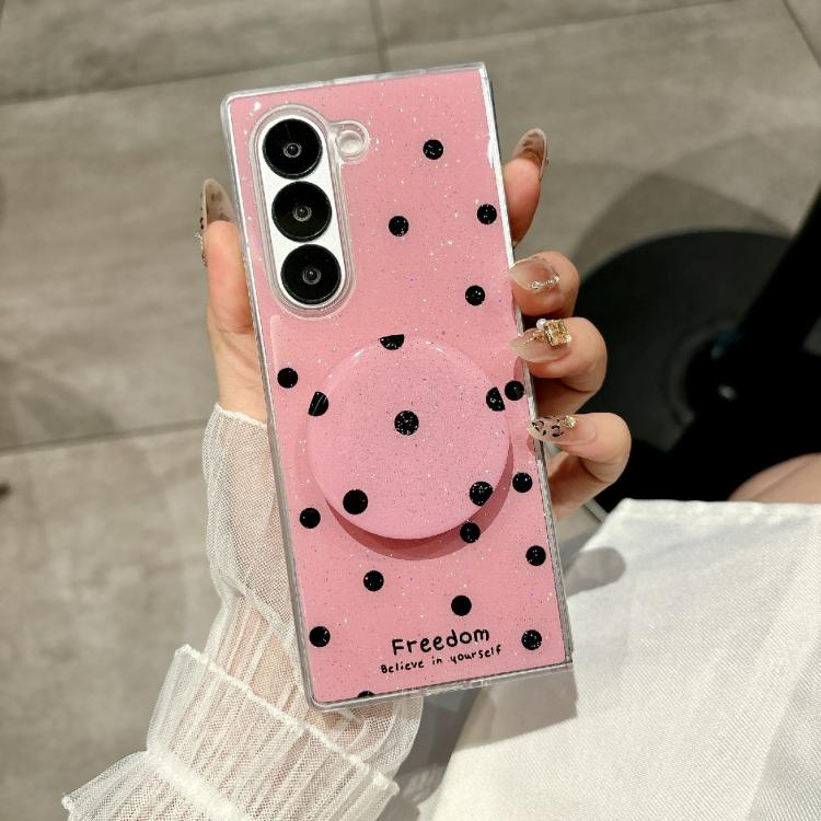Funda para Samsung Galaxy Z Fold5 con diseño de puntos brillantes y soporte (rosa y rojo)